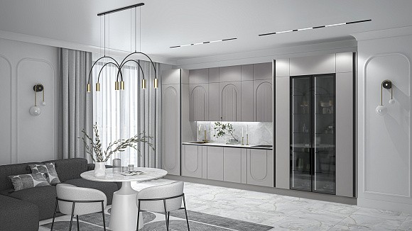 Кухня Арко Неоклассика в серой палитре — это гимн архитектурной гармонии, тишине и глубине. Каждый ее элемент дышит историей, но звучит современно. Это не просто мебель — это интерьерная доминанта с характером: сдержанным, но выразительным.