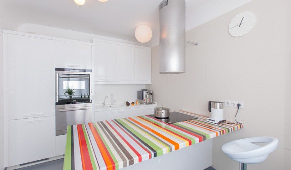 В просторных комнатах однотонные светлые поверхности могут смотреться не совсем уютно и гармонично. Чтобы этого не произошло, их обыгрывают коричневыми, черными, графитовыми, бордовыми вставками. В помещениях, расположенных на северной стороне, используют оранжевые, красные и желтые декоративные элементы. С такой отделкой любая белая кухня внесет в интерьер дополнительный свет и визуальное тепло.