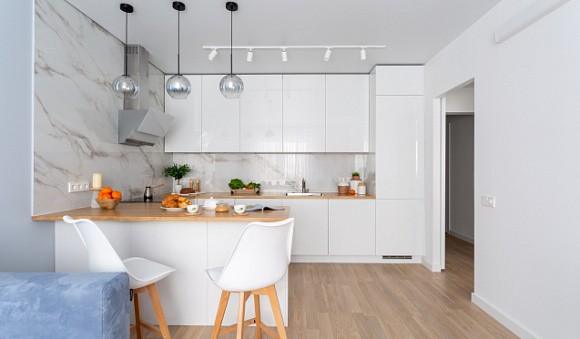 Производители выпускают кухни белого цвета в разных стилях. Сегодня большой популярностью пользуются версии с минималистическим дизайном. Например, гарнитуры сканди, отличающиеся простотой и функциональностью. Комплекты такого типа изготавливают из природных материалов или качественного МДФ.