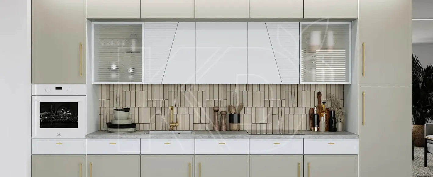 - Определите место для хранения посуды, принадлежностей и продуктов. Убедитесь, что всё поместится в шкафчики.