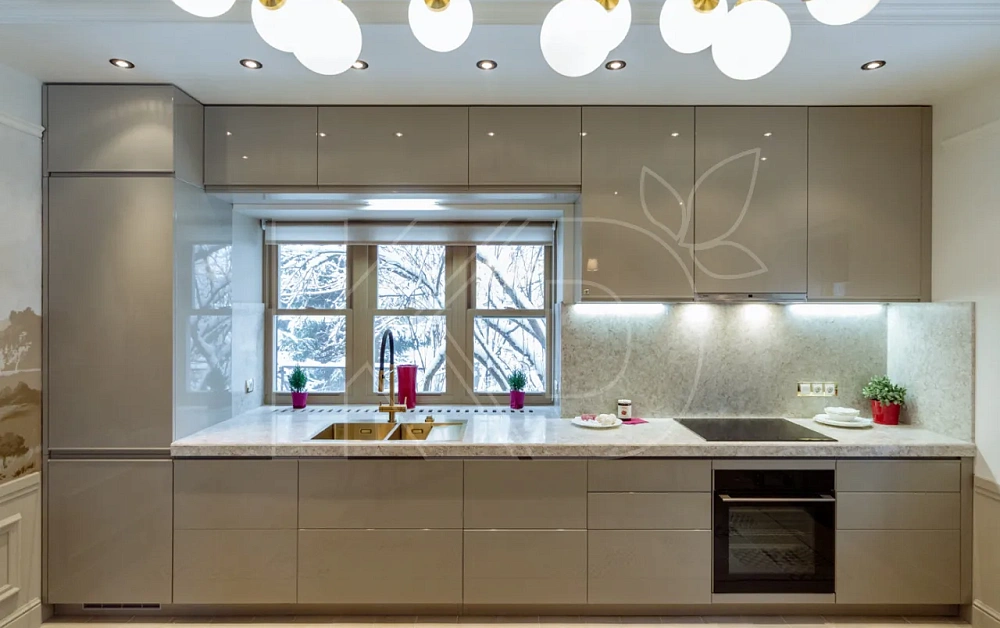 После установки кухни и плитки необходимо убедиться в правильной работе новых кухонных приборов. Важно расположить светильники на разных уровнях и установить пеналы и шкафы внутри новой кухни.