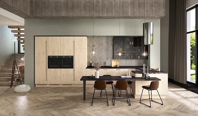 Широкое применение плита на кухне нашла во всем мире, где ее ценят не только эстетические качества этого универсального материала, но и возможность использовать более бюджетные комплектующие при обустройстве и стилизации современных мебельных фасадов с имитацией спила натуральной древесины и шпона.