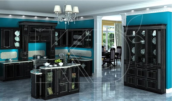 Классическая кухня обладает легко узнаваемыми чертами. Такая мебель спроектирована в строгом соответствии с требованиями симметрии, а для ее изготовления используются массив, шпон благородных пород или стилизованные под натуральное дерево современные материалы, такие как экомассив или экоплиты. Фасады гарнитуров украшает сложная фрезеровка, резные карнизы, колонны и балюстрады, для оформления часто служит лепнина, витражи из матированного стекла, решетки фигурных форм, инсталляции из кристаллов Swarovski.