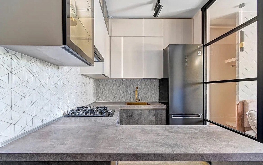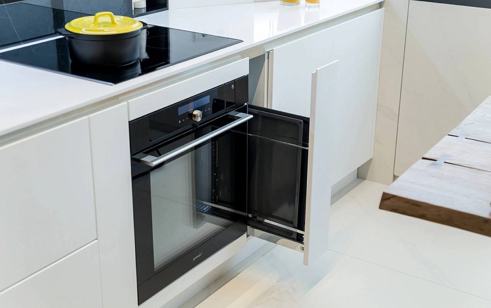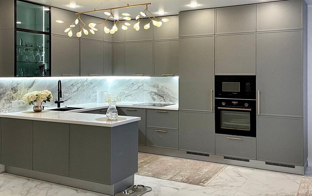 Данное правило в первую очередь касается параллельной и П-образной планировки. Для свободного перемещения между модулями потребуется расстояние 1,2-1,5 метра. В противном случае будет неудобно открывать дверцы шкафов и духовок.