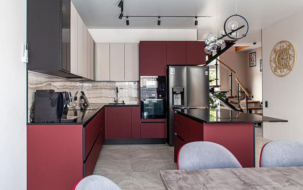 Если стены кухни не позволяют установить стандартный комплект мебели, рекомендуем заказать кухню по индивидуальным размерам. В этом случае дизайн-проект будет реализован с учетом особенностей помещения. Например, ниши будут использованы для установки полок и бытовой техники.