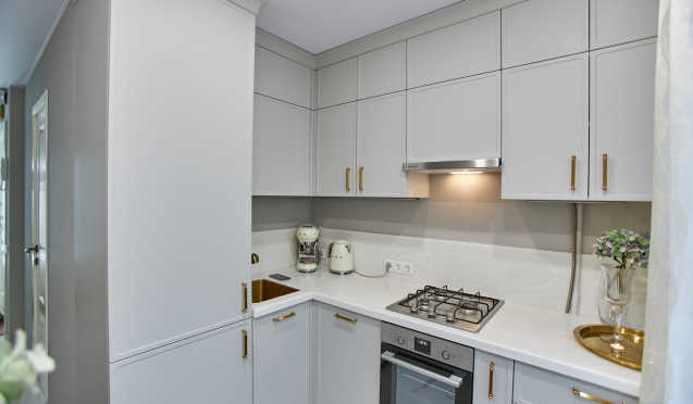 Конечно, можно купить готовый вариант кухни и удачно интегрировать его в небольшое пространство. Однако лучший вариант – разработка индивидуального проекта с учетом расположения коммуникаций и соблюдением принципа рабочего треугольника.