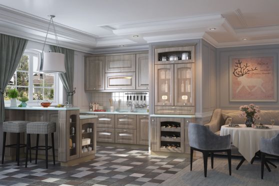 Массив для гарнитура выбирают, если хозяева не собираются часто заниматься ремонтами, мечтают о создании респектабельного интерьера, отдают предпочтение экологичным технологиям и природным материалам.