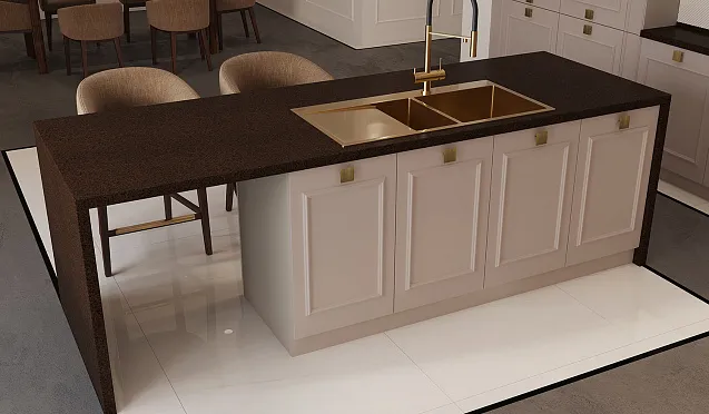 При частой смене интерьера не заказывайте гранитную столешницу. Ее следует приобретать на долгий срок.