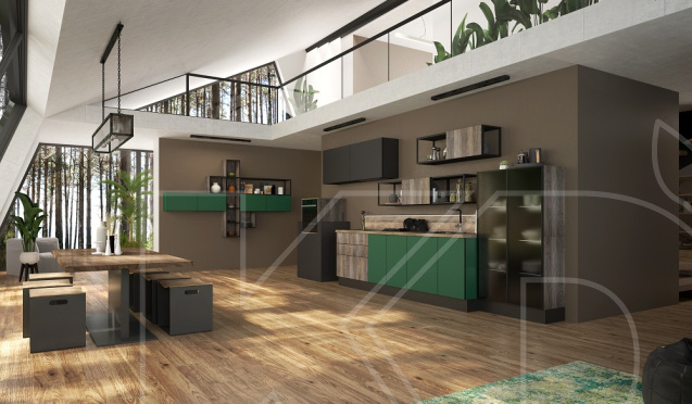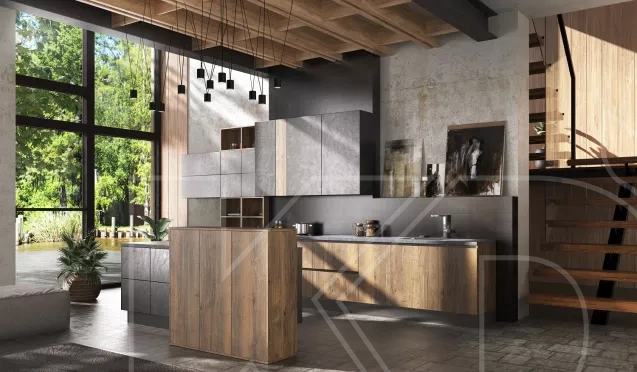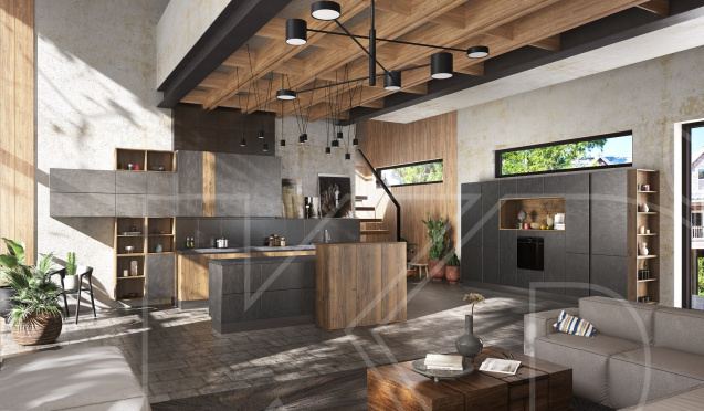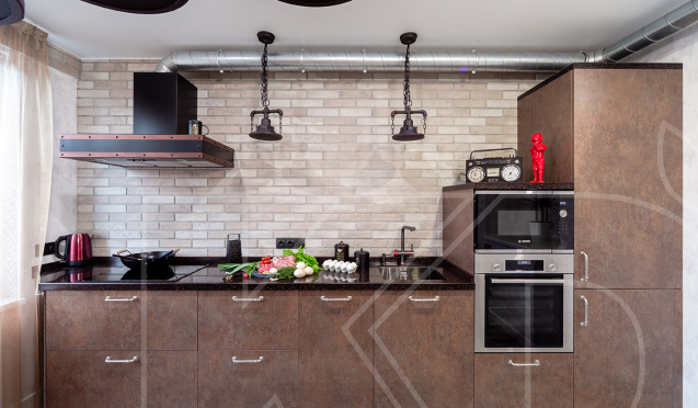 Кухонный гарнитур коричневого цвета идеально вписывается в стиль лофт. Для придания дизайну характерной своеобразности используется красно-коричневый кирпич или бетон. Мебель в стиле лофт специально должна быть грубоватой, но при этом эргономичной и функциональной. Основной задачей в процессе проектирования является сохранение эффекта промышленного помещения.