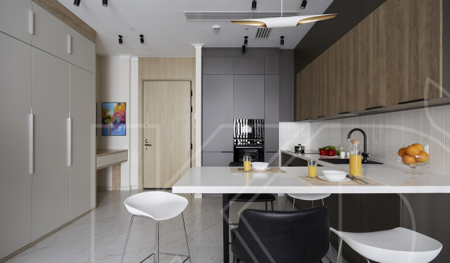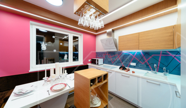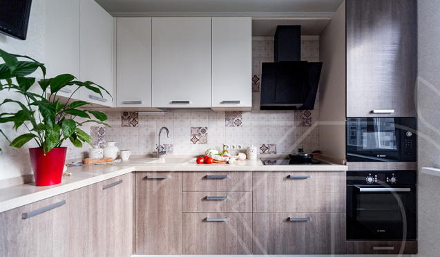 Выбирая двухцветный кухонный гарнитур, необходимо помнить, что один из них должен быть доминантным в плане пропорционального соотношения и насыщенности. Невыполнение этого требования приведет к слиянию композиции в общее пятно. Естественно, такое помещение невозможно будет назвать эстетически привлекательным.