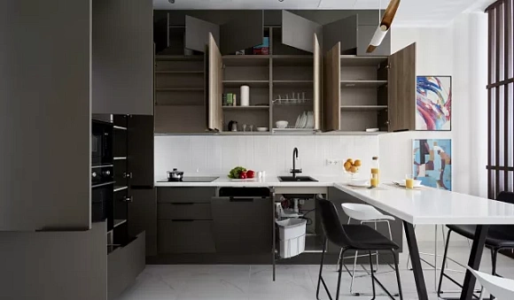 Обратите внимание! При оформлении кухни в темно-коричневом оттенке необходимо помнить, что он является теплым, а значит, способен поглощать дневной свет. Следует заранее продумать правильное расположение как вечернего, так и дневного освещения. Это позволит предотвратить унылость и обеспечит хорошую видимость предметов, когда придется работать на кухне.