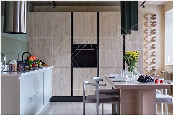 В одном углу помещения создают так называемый рабочий треугольник, состоящий из мойки, холодильника и варочной панели. Это максимально удобно для хозяйки: ей не нужно делать лишних движений, можно за минимальное время достать нужные продукты, вымыть их и поставить на огонь.