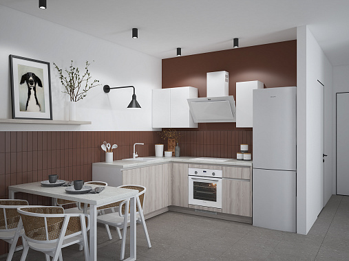 Компактная и функциональная, кухня Уна идеально подойдёт тем, перед кем стоит задача разместить максимум функциональных фон в небольшой пространстве. Выразительное двухцветное сочетание фасадов создаёт уют и визуальный баланс. Модель легко адаптируется к разным стилям — от скандинавского до современного. Фасады выполнены из прочной экоплиты EGGER — надёжного материала, устойчивого к влаге и механическим повреждениям.