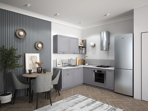 Вдохновлена роскошью, исполнена в минимализме. Кухня-сет Уна — готовое решение для тех, у кого нет времени на индивидуальный проект. Компактная L-образная планировка гарантирует 100% удобство в использовании, а сочетание лаконичных фасадов и строгих акцентов задаёт современный настрой всему интерьеру. Строгий дизайн, продуманные детали и удобные системы хранения делают эту кухню идеальным выбором для тех, кто превыше всего ценит комфорт и эстетику.