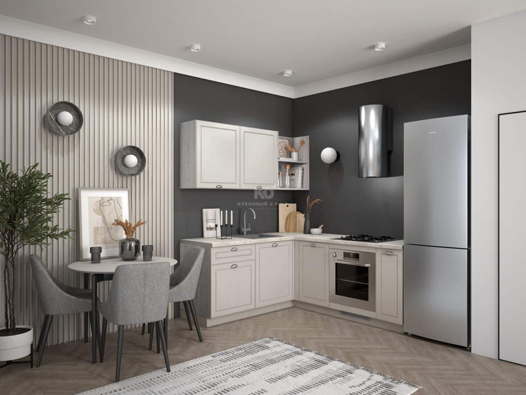 Кто сказал, что классика не готова адаптироваться под стандарты скандинавского минимализма? Доказываем, что готова! Лея гармонично сочетание в себе мотивы прошлого и тренды настоящего. Мягкая цветовая палитра и аккуратные детали создают атмосферу уюта и гармонии. Лаконичные фасады с изящной фрезеровкой и открытые полки придают интерьеру нотку той самой утончённости, а продуманная Г-образная архитектура даёт ощущение комфорта от каждого контакта с нашей Леей. Идеально решение для тех, кто кто ценит традиции в сочетании с функциональностью.