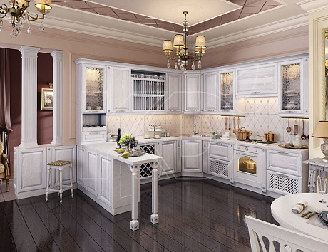 • В такой форме выполняют и классические мебельные комплекты. Их выбирают для обустройства просторных помещений с высокими потолками и большими окнами. Для декоративной отделки изделий применяют стекло, позолоту, патину, лепнину и сложные резные узоры.