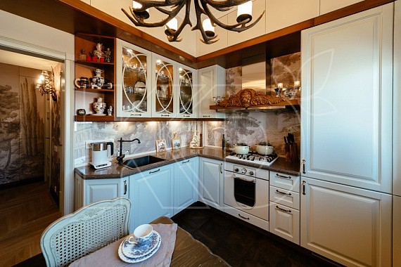 Если на вашей кухне есть открытые полки, на них можно разместить небольшое количество декора. Пусть это будут стильные статуэтки, рамки с памятными фотографиями или баночки со специями. Но не стоит увлекаться. Предметов интерьера не должно быть много, они должны свободно стоять на полке и быть выполнены в едином стиле.