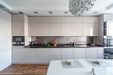 При выборе палитры оттенков стоит отталкиваться от габаритов помещения. На просторной кухне одинаково уместны светлые и темные гарнитуры. Если помещение не слишком большое, предпочтительнее светлая цветовая гамма. Дополнительное пространство помогут создать глянцевые фасады. Они рассеивают свет и делают кухню визуально более просторной.
