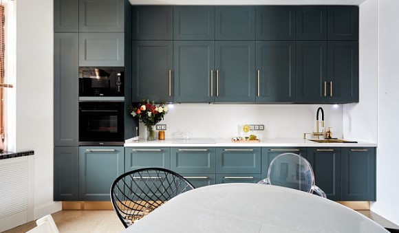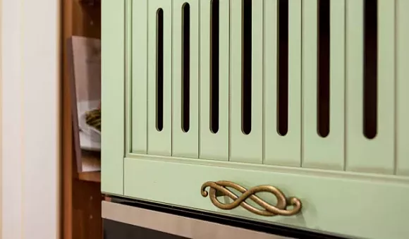 Например, для помещения больших размеров с высокими потолками подойдет классическая зеленая кухня. Подобные гарнитуры обычно выполняют в изумрудных, малахитовых, коричнево-зеленых тонах. Для их декоративного оформления используют резные узоры, лепнину, позолоту, патину.