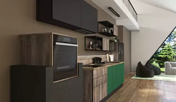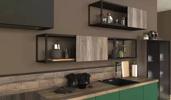 Универсальность. Производители выпускают разные кухни в зеленых тонах. Этот цвет может использоваться для создания моделей в традиционных и современных стилях.