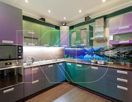Компания «Кухонный двор» предлагает гарнитуры разных расцветок и форм. Здесь вы сможете приобрести зелено-голубую