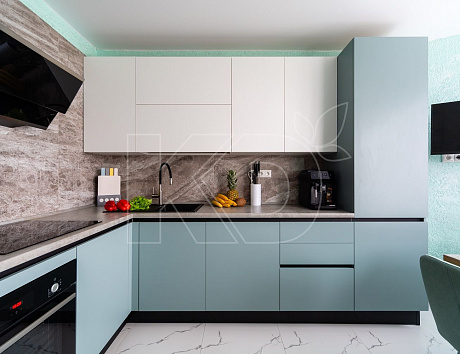 Зелено-голубая палитра подойдет гарнитурам многих стилей: