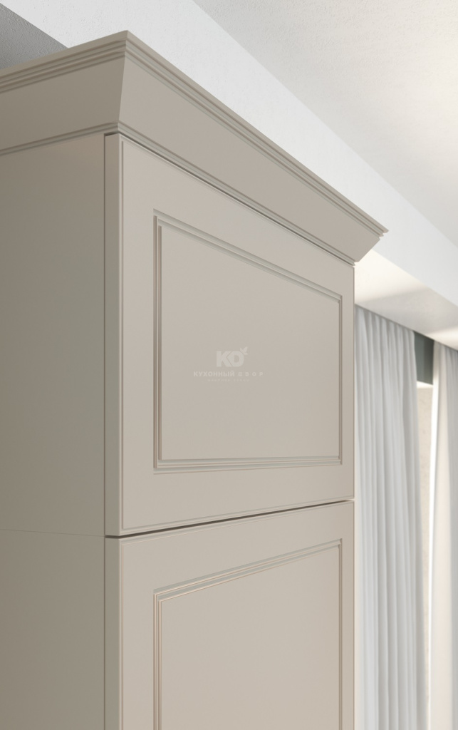 • Привлекательные формы. Фасады модели имеют утончённую фрезеровку, а сама кухня может быть увенчана изящными карнизами. Эти «классические» штрихи вдыхают в лаконичную архитектуру модели жизнь и добавляют благородства её игривому нраву.