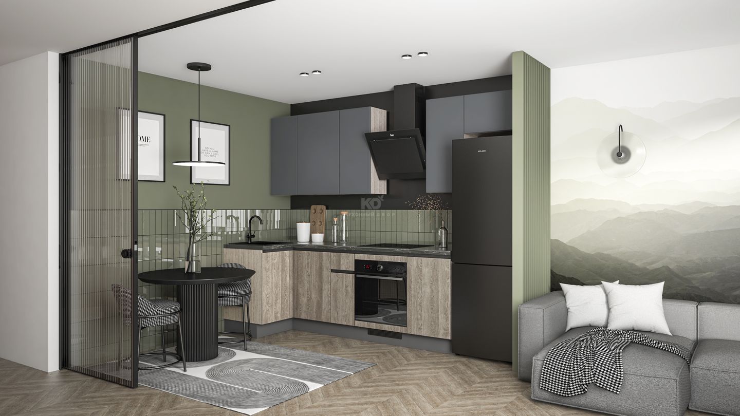 Угловая кухня Уна — практичное решение для тех, кто ценит безупречное качество, современный дизайн и комфортную цену. L-образная планировка делает её идеальной для компактных помещений — студий, апартаментов или небольших квартир, — позволяя эффективно использовать каждый сантиметр пространства.