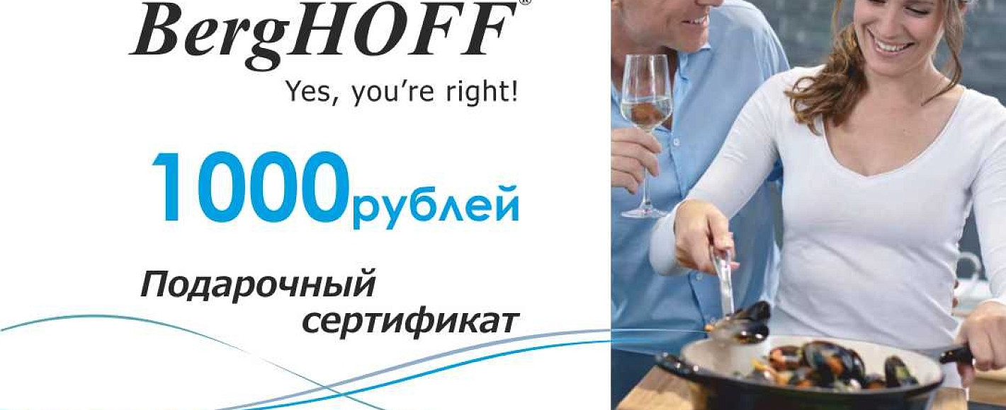 Хорошую кухню хочет каждая. А о посуде с мировым именем «Бергхофф» каждая из нас втайне мечтает… Мечты сбываются! Совместная акция компаний «Кухонный Двор» и «Бергхофф» позволяет каждому покупателю стать обладателем сертификата от бренда бельгийской посуды «Бергхофф» на сумму от 1000 рублей. Коллекции посуды и аксессуаров «Бергхофф» создаются при участии известных дизайнеров, и ценителей этого бренда с каждым днем становится все больше. Присоединяйтесь!