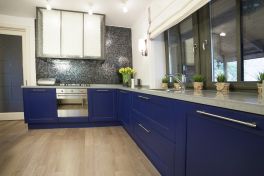 Синяя кухня с светлой столешницей ("Дачный ответ" от 14.04.13)